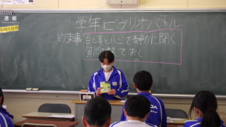 先日、各クラスの代表生徒がクラスを回り、学年ビブリオバトルを行いました。