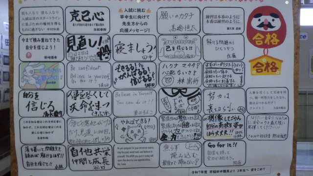 3年間、早稲田中学校で積み重ねてきた学びと努力が、十分に発揮されるよう願っています。がんばれ、早中生!
