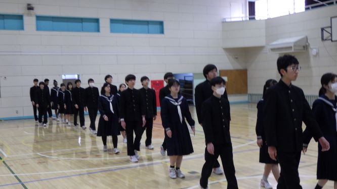 今日も卒業式練習。証書授与の動きの確認とレベルアップを図りました。