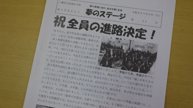 ついに3月です。担任の願いが込められた学級だよりに目を通します。