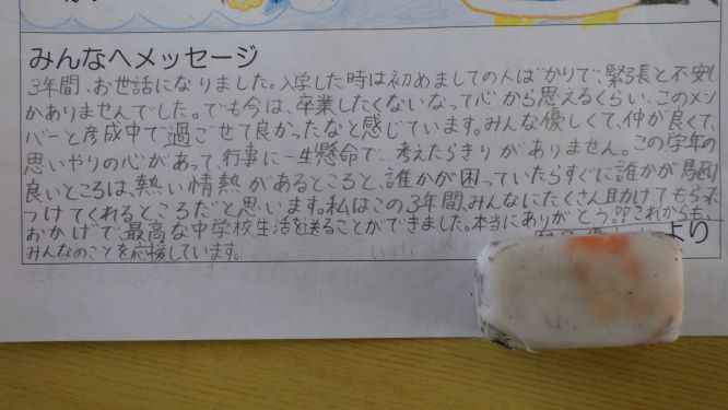 明日も合唱や学年練習があります。体調を整えて臨んでくださいね。また明日!