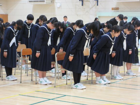 卒業式練習お疲れさまでした。明日も1時間目に全校練習があります。張り切って頑張りましょう。