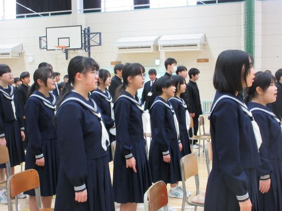 卒業式まで残り少し、所作も合唱もこれまでの中で一番良いものを発揮して、卒業生を送り出せるよう頑張りましょう。