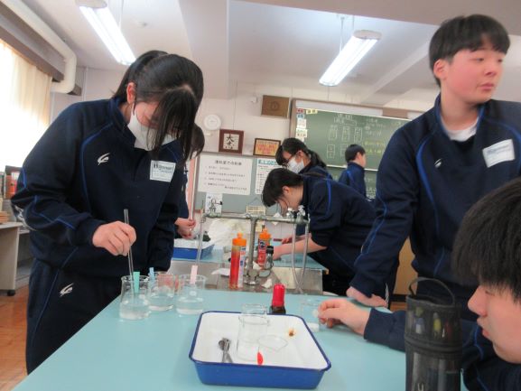 自分たちで立てた実験計画を元に、安全に気をつけながら実験を行っています。