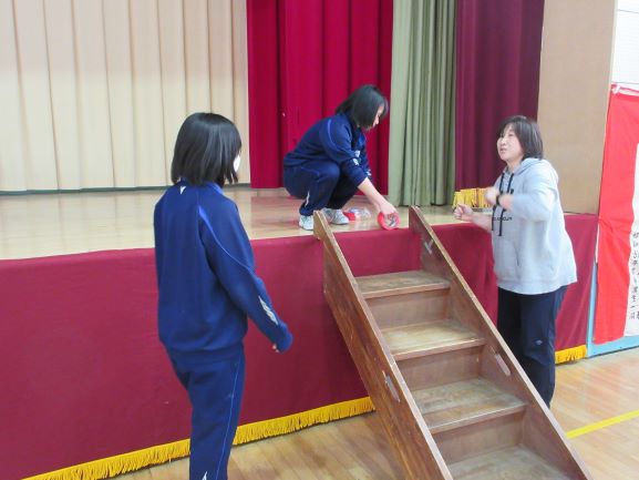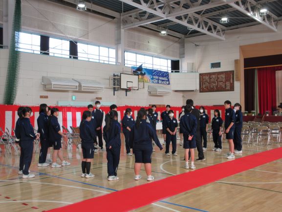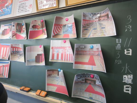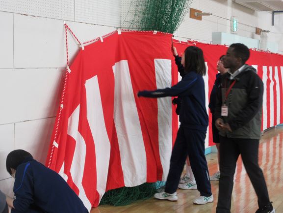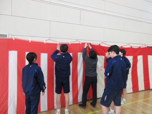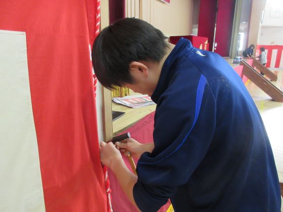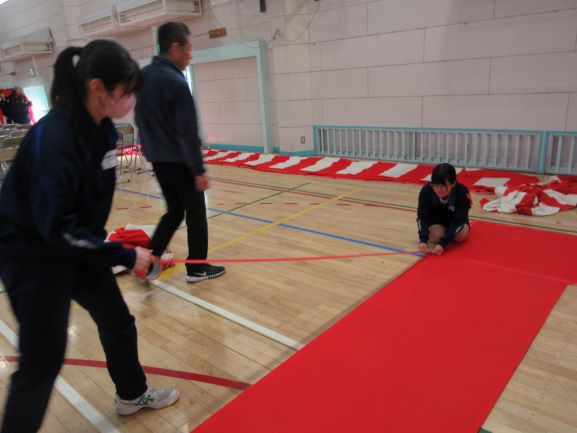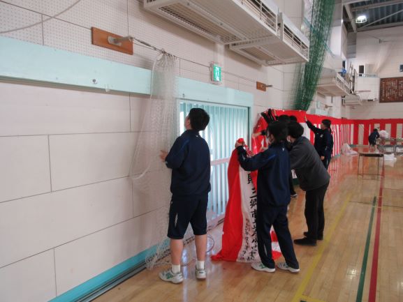 午後の時間では、卒業式に向けて体育館の準備を行いました。