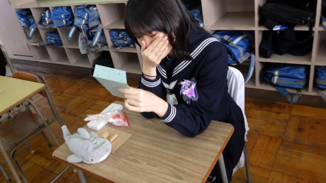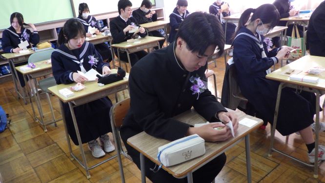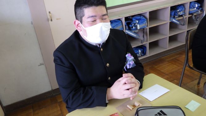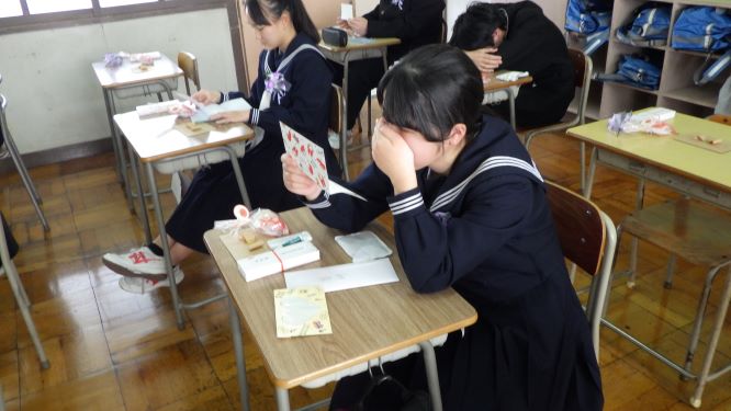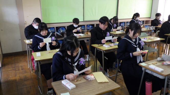 メッセージカードをもらって素直に喜ぶ3年生。そういうところが素敵です。