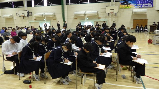 みんなが帰った後、体育館には、ひとりで答辞の練習をするKさんの姿がありました。