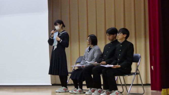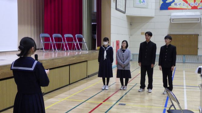 お礼の言葉をいただきました。4名の3年生代表のみなさん、ありがとうございました。