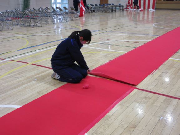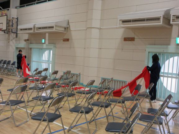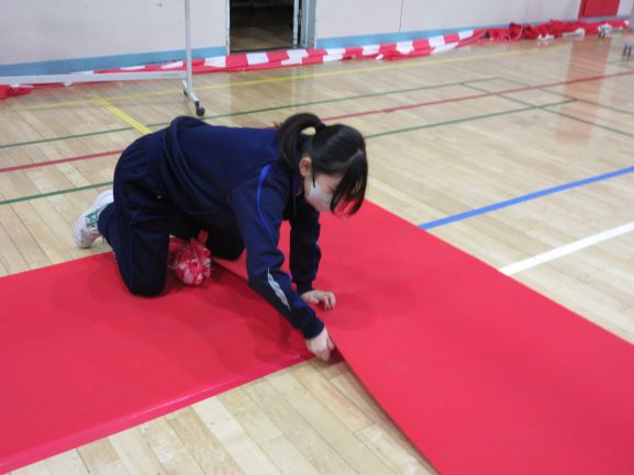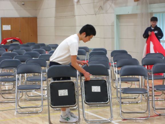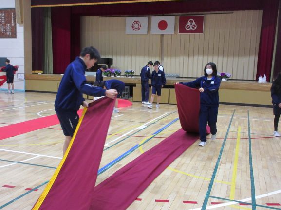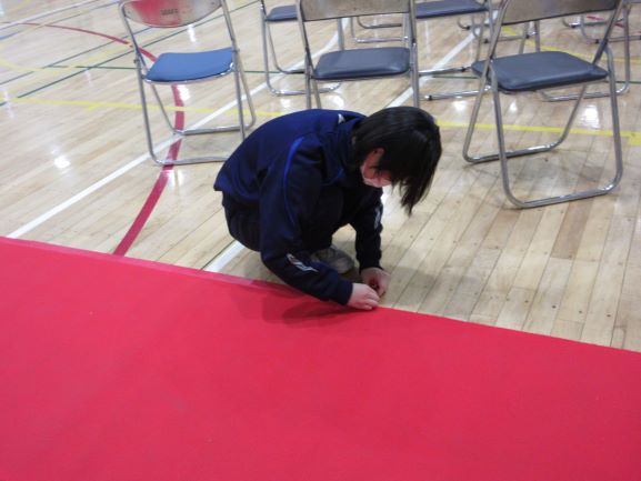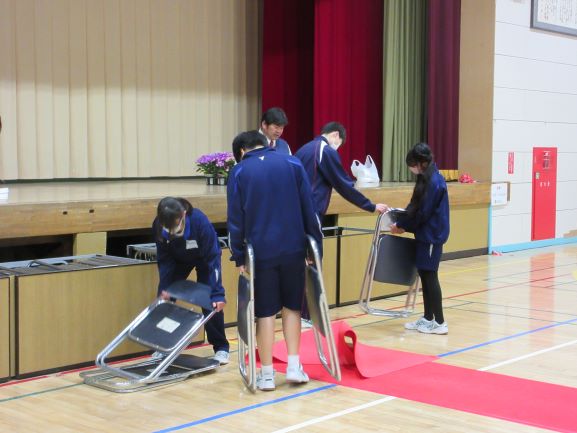 卒業式前日です。2年生は卒業生に向けて会場準備を行いました。