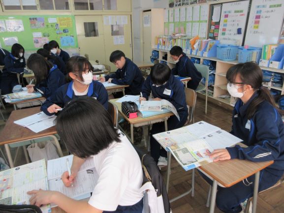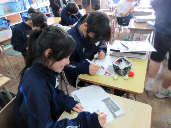 久しぶりの奈良時代や平安時代に、苦戦しつつ、友達と協力して復習していました。