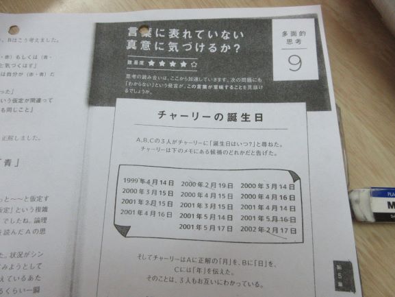 授業では、国語の時間で難しい思考問題に挑戦していました。