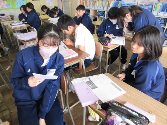 2年生最後の学活では、通知表がY先生から一人一人手渡されました。