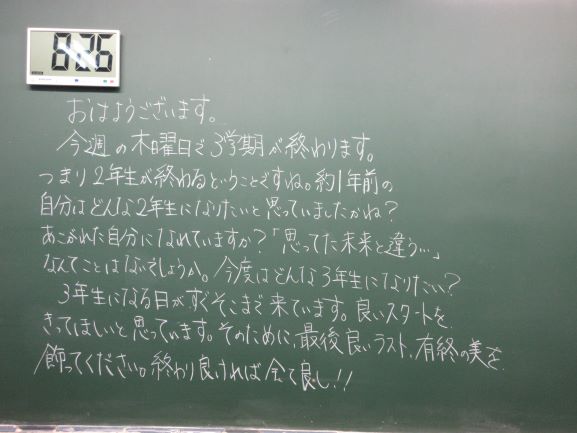卒業式まで残り少し、所作も合唱もこれまでの中で一番良いものを発揮して、卒業生を送り出せるよう頑張りましょう。