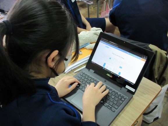 日本語ではスムーズにタイピングできる2年生ですが英語のタイピングでは苦戦しています。