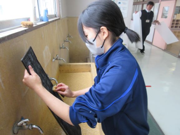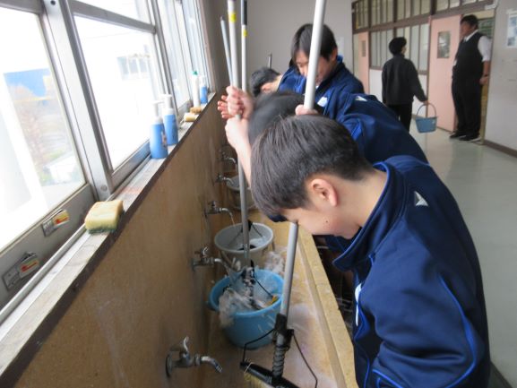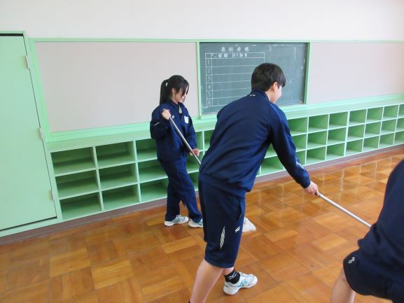 集会後は、大掃除を行いました。1年間お世話になった教室をきれいにしていきます。