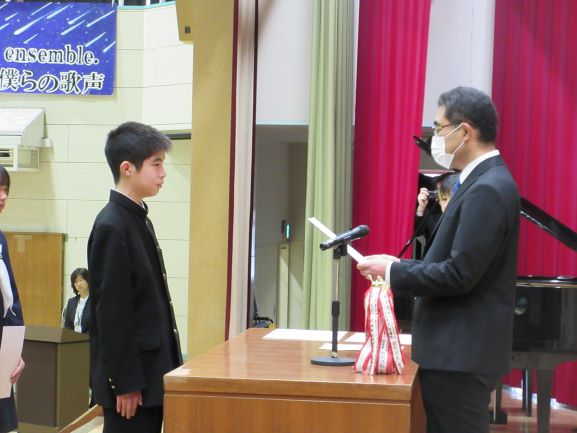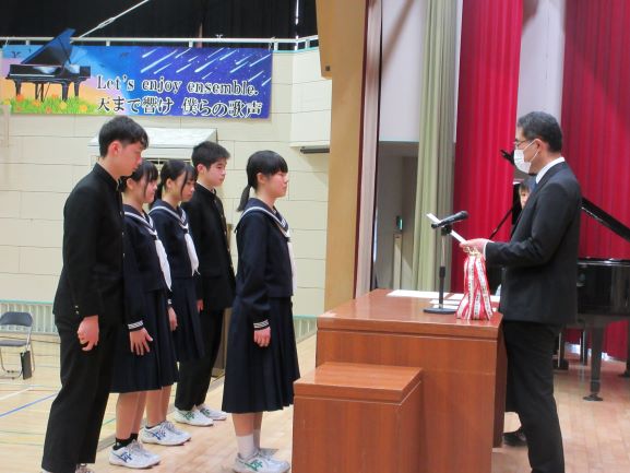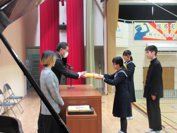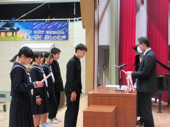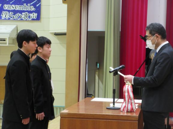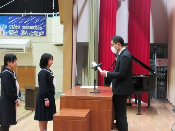 修了証は2年生を代表してSさんとAさんが受け取りました。