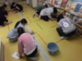 グループごとに分かれ、図書館の本棚整理やトイレ掃除、エアコンのフィルター清掃などに取り組みました。