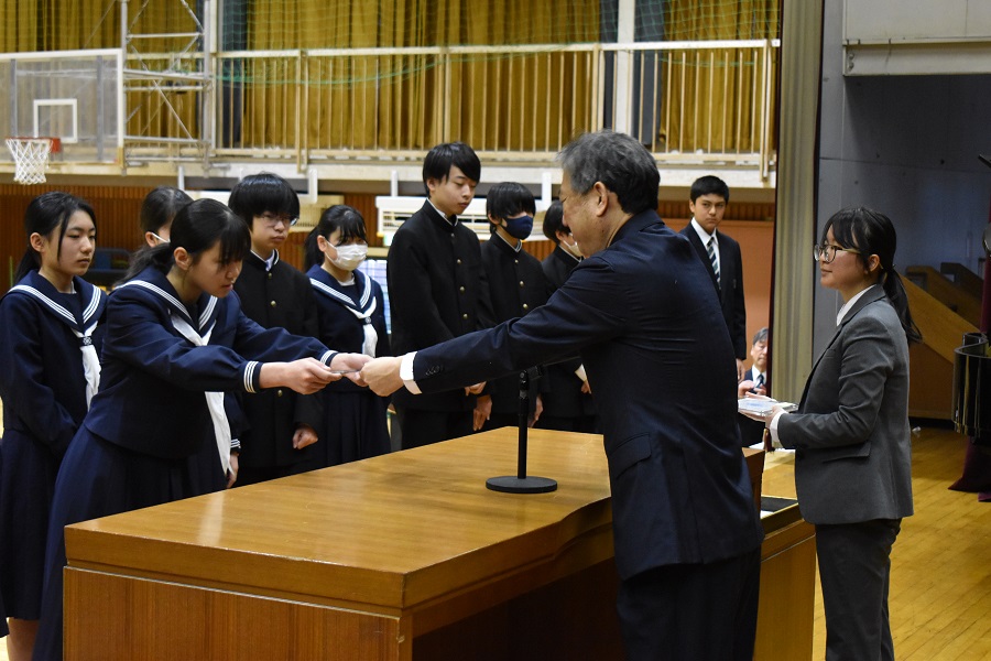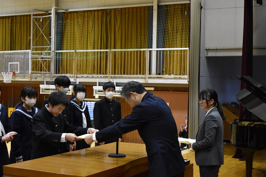 修了式と表彰の様子
