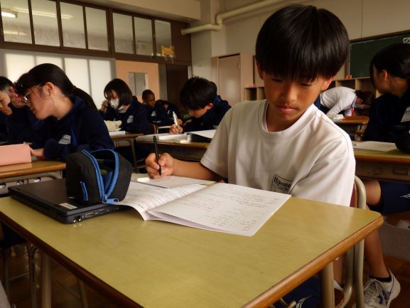授業では、国語の時間で難しい思考問題に挑戦していました。