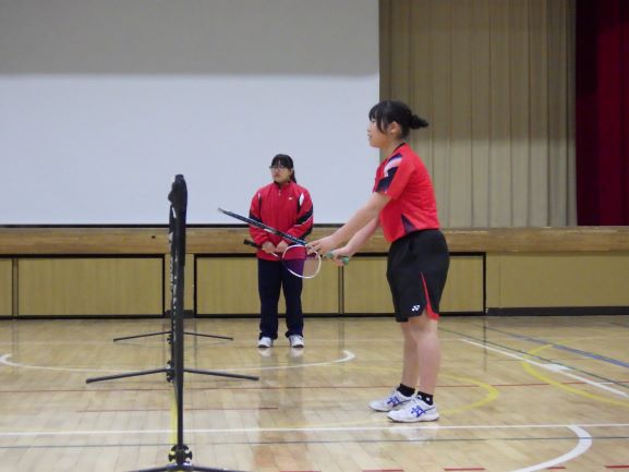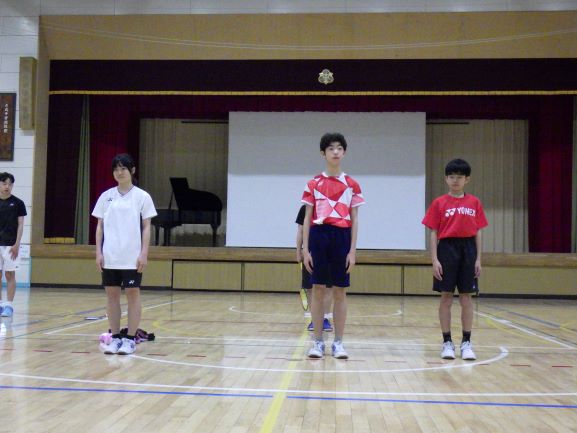 バドミントン部のメンバーで一列になってすき間なくかけています。