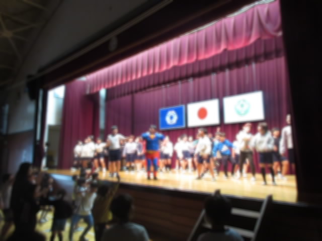 校長先生は音楽に合わせて、スーパーマンとなり登場!!