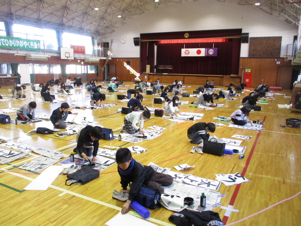 3,4,5,6年生が校内書き初め競書会を行っていました!