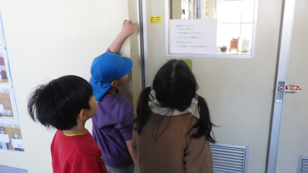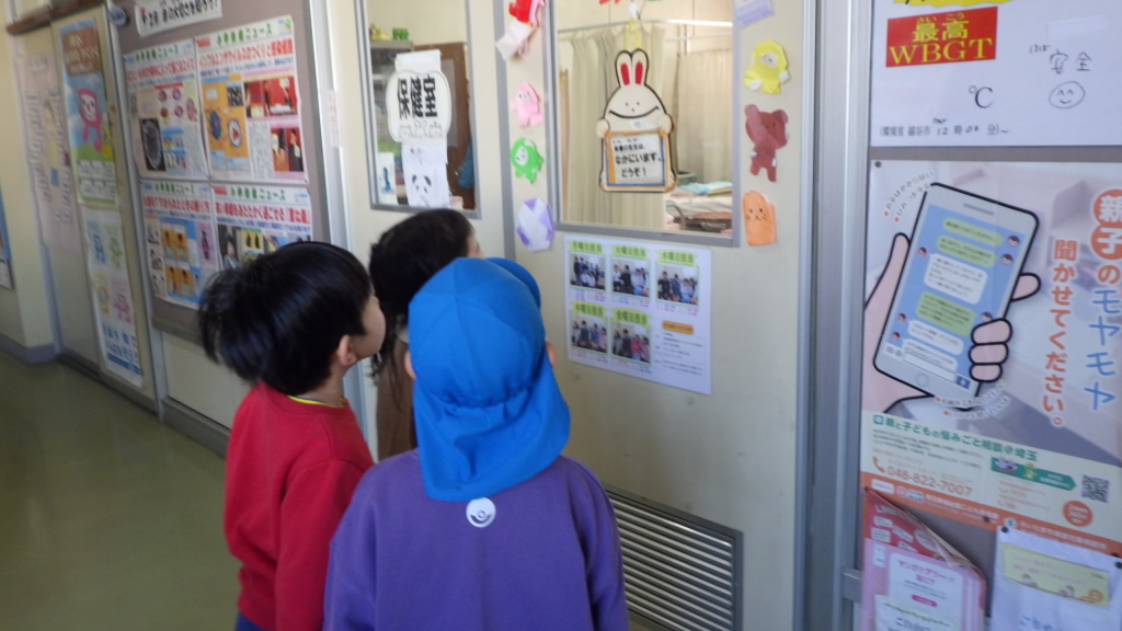 今日は1年生と保育所の子どもたちが学校を探検していました!