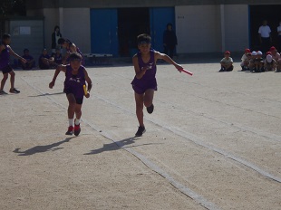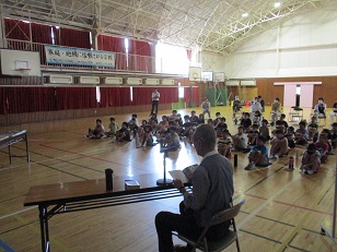 来週4日に迫った陸上大会本番、業間や放課後に練習してきた成果を、全校児童の前で披露しました。