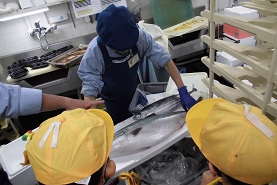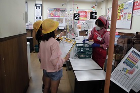 普段は見られないスーパーの裏側を見せていただいたり、色々な質問に答えていただいたりしていただきました。