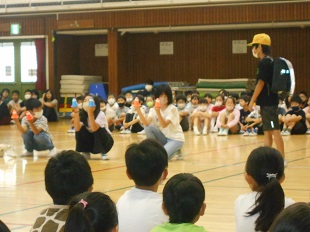 1・2年生は全体でのジンギスカンは初めてでしたが、6年生が横に立ち、真似して踊ることができました。