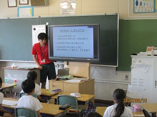 今日のおはよう運動の時間を使い、「いのちの安全教育」行いました。