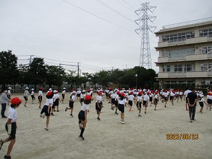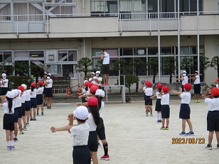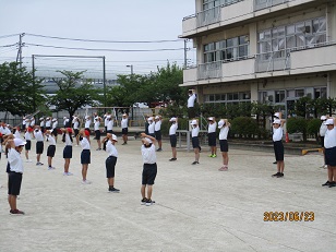 今朝のおはよう運動は、東小ストレッチとジンギスカンを行いました。