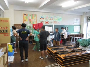 雨天延期となったため、必要なものを1階備蓄倉庫に運び、当日すぐに外に出せるようにしました。