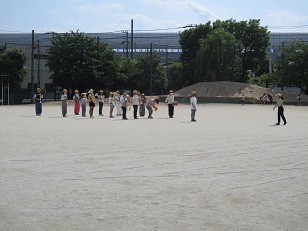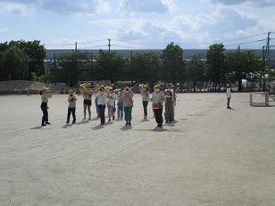 放課後の校庭で、金管バンドクラブが練習をしていました。