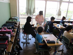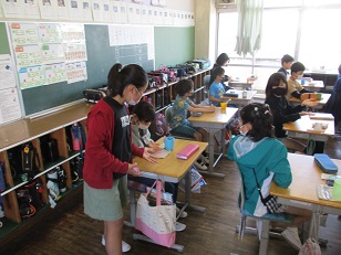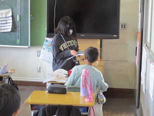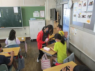 各クラスを回り、ハンカチ・ティッシュを持っているか?爪を切ってあるか?歯ブラシの先はどうか?をチェックしてくれました。