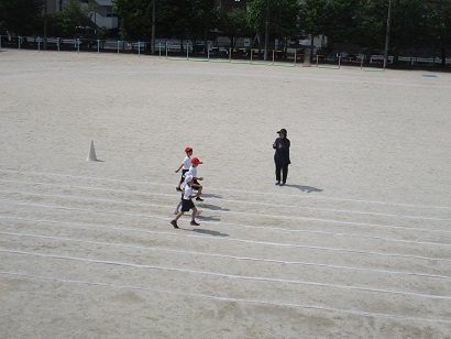 運動会に向け、1年生が行進の練習をしていました。