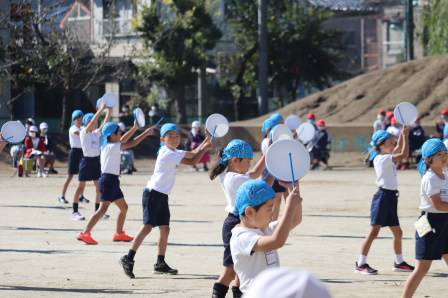 体を力一杯動かし、大きく元気なダンスを見せていました。曲をよく聴き、太鼓を叩いたり、ステップを踏んだりと多くの人に見られながらの発表は初めてでしたが、よくがんばりました。退場まで笑顔いっぱいですばらしい演技でした。