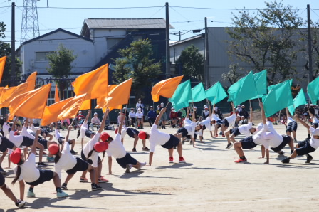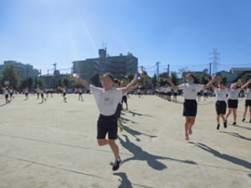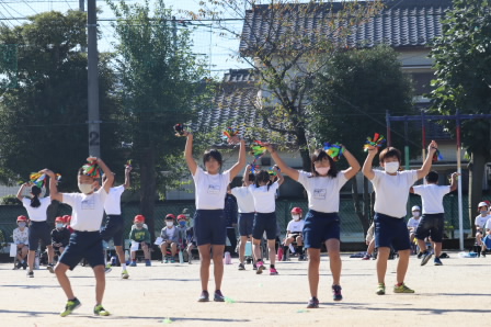 テンポの速い曲にも負けない、大きなふりでダンスしていました。複雑な隊形移動も見事でした。全員が息をそろえて笑顔で踊る姿を見て、校庭にも笑顔があふれていました。練習の時から一生懸命取り組んだ成果を発揮することができました。