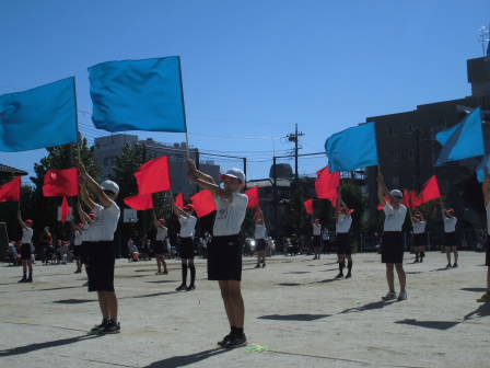 高学年としての誇り(PRIDE)を胸に、力強く、そしてかっこよく演技をしていました。行進から演技、止まっている姿まですべてを使って、自分たちの心を表現していました。高学年が一丸となってやり切った演技が高州東小に感動を呼びました。