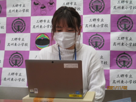 本日、11月の全校朝会を行いました。全校で集まって話を聞くことはまだできませんが、タブレットでMicrosoft Teamsを活用し実施いたしました。画面上ではありましたが、話している人の方に、姿勢を正し話を聞くことができました。生活目標のお話では、読書に親しめるようおすすめの本の紹介もありました。